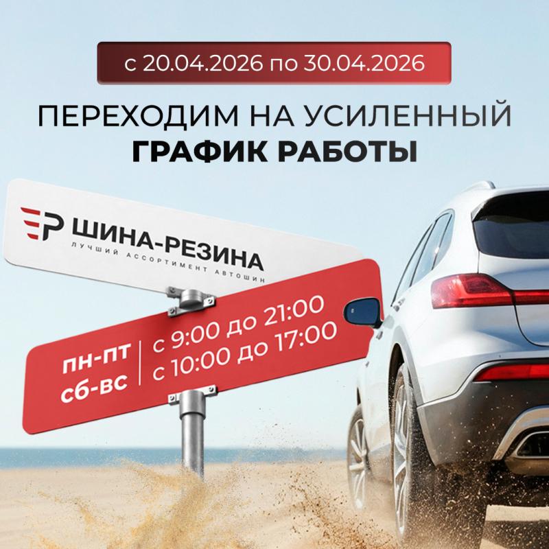 С 20.04.2026 по 30.04.2026 года шинный центр "Шина-Резина" переходит на усиленный график работы: